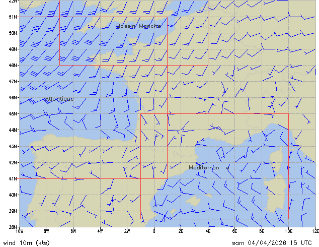 Ces cartes sont pour guidance seulement. En réalité les coups de vent et les hauteurs de vagues peuvent être considérablement supérieur de ceux montrés.